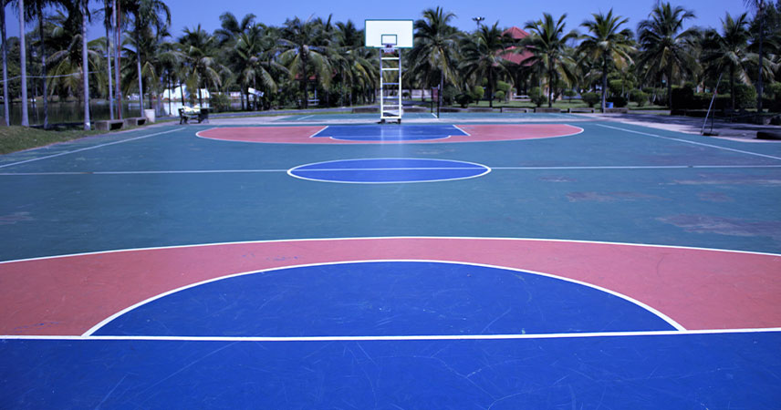 La résine époxy est parfaitement adaptée aux terrains multisports et aux aires de jeux polyvalentes.